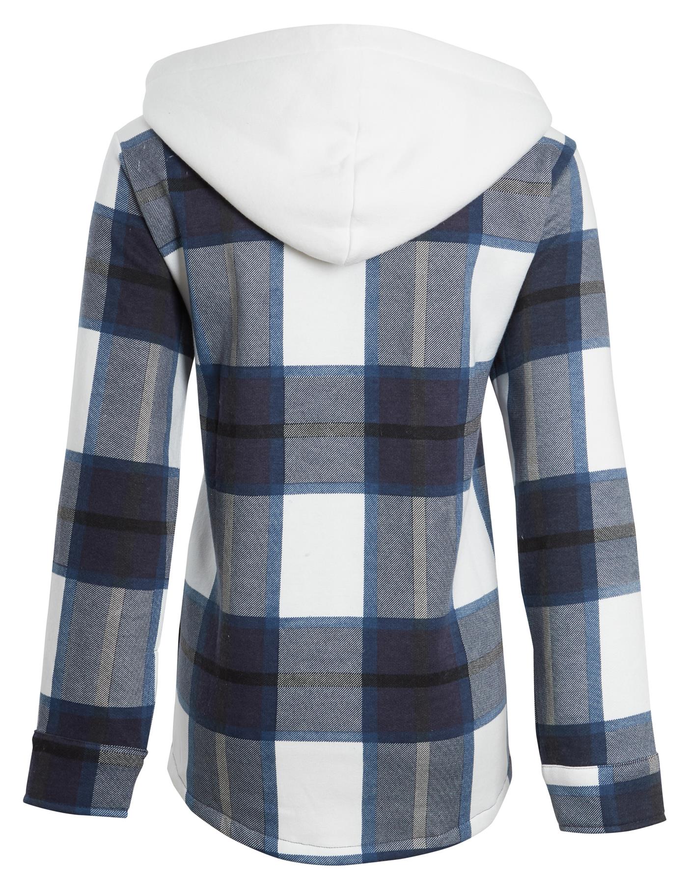 • Load image into Gallery viewer, Womens Check Fleece Zip Up Hooded Shacket - Navy