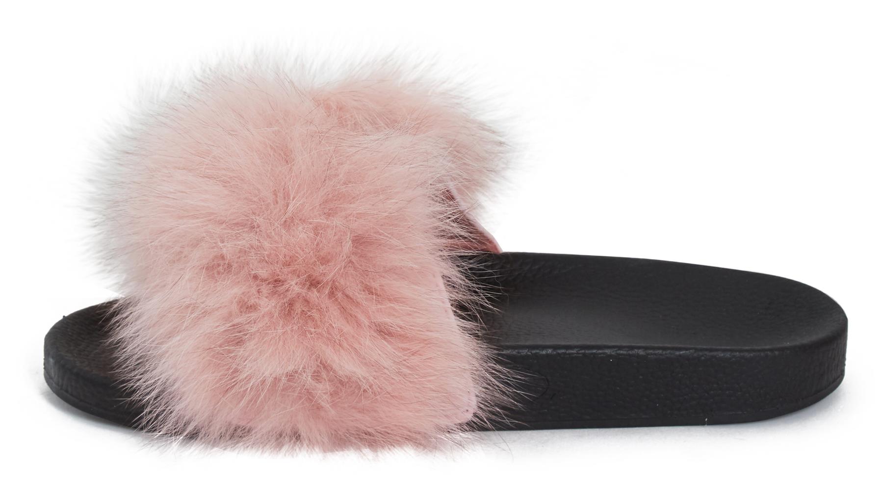 Womens Fur Summer Fluffy Sliders Flip Flops - Pink